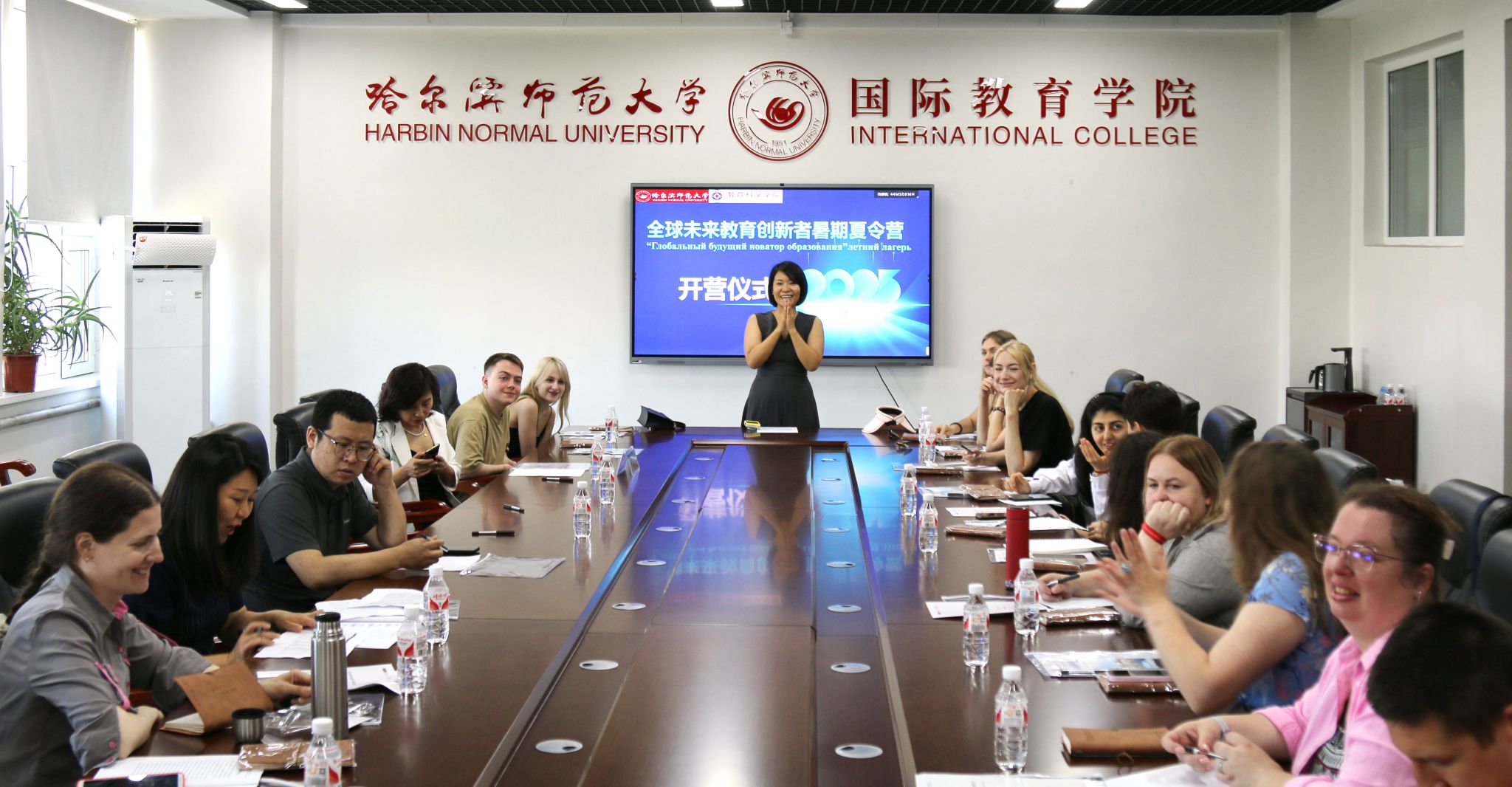 (杜禾/文)2025年7月21日,由我校教育科学学院承办的“全球未来教育创新者”国际暑期夏令营在我校江南校区正式启动,来自俄罗斯联邦莫斯科国立大学、莫斯科国立师范大学、肖洛霍夫人文国立大学、普列汉诺夫经济大学等9所高校的近17位俄罗斯教育工作者以及博硕研究生将完成为期16天的国际夏令营活动。国际交流合作处处长戴旭楠、国际教育学院院长张晓涛、教育科学学院院长陈云奔及副院长殷宝媛、比较教育学教研室的李娜、陈桂香、王睿、杜禾等老师与学生志愿者一起参加了夏令营开幕式。开幕式由陈桂香教授主持。