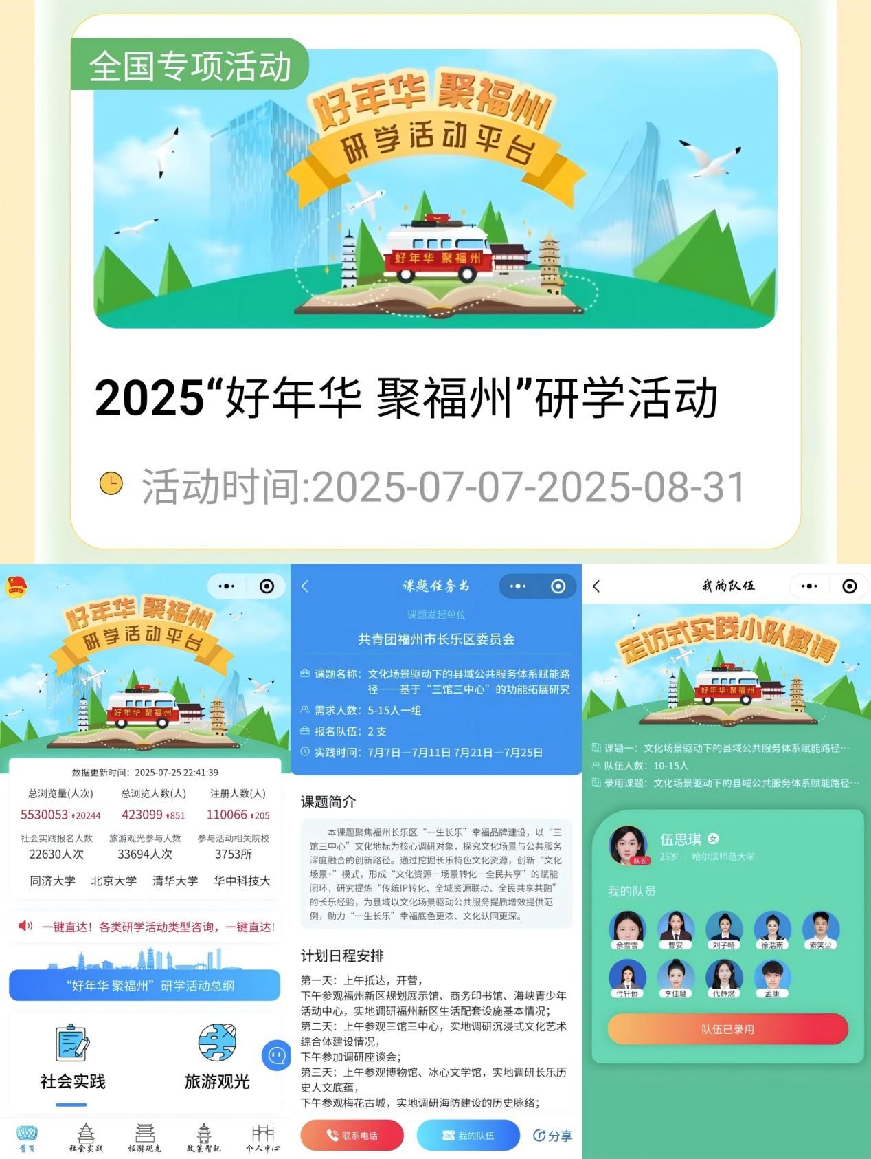 (刘恩权/文)近日,教育科学学院组建的哈尔滨师范大学教育科学学院硕博调研团入选2025“好年华聚福州”研学活动(2023-2025持续立项);哈尔滨师范大学教育科学学院“琼儋苏韵,天涯载酒”硕博调研团入选2025 年全国大学生暑期文化科技卫生“三下乡”社会实践活动“知海南、看海南、聚海南、享海南”专项活动(2024-2025连续立项);哈尔滨师范大学教育科学学院龙井红韵延边行实践团入选 “跟着总书记脚步看吉林”2025年全国大学生“三下乡”主题社会实践活动(2024-2025连续立项)。至此,学院累计入选国家级社会实践专项活动17项。